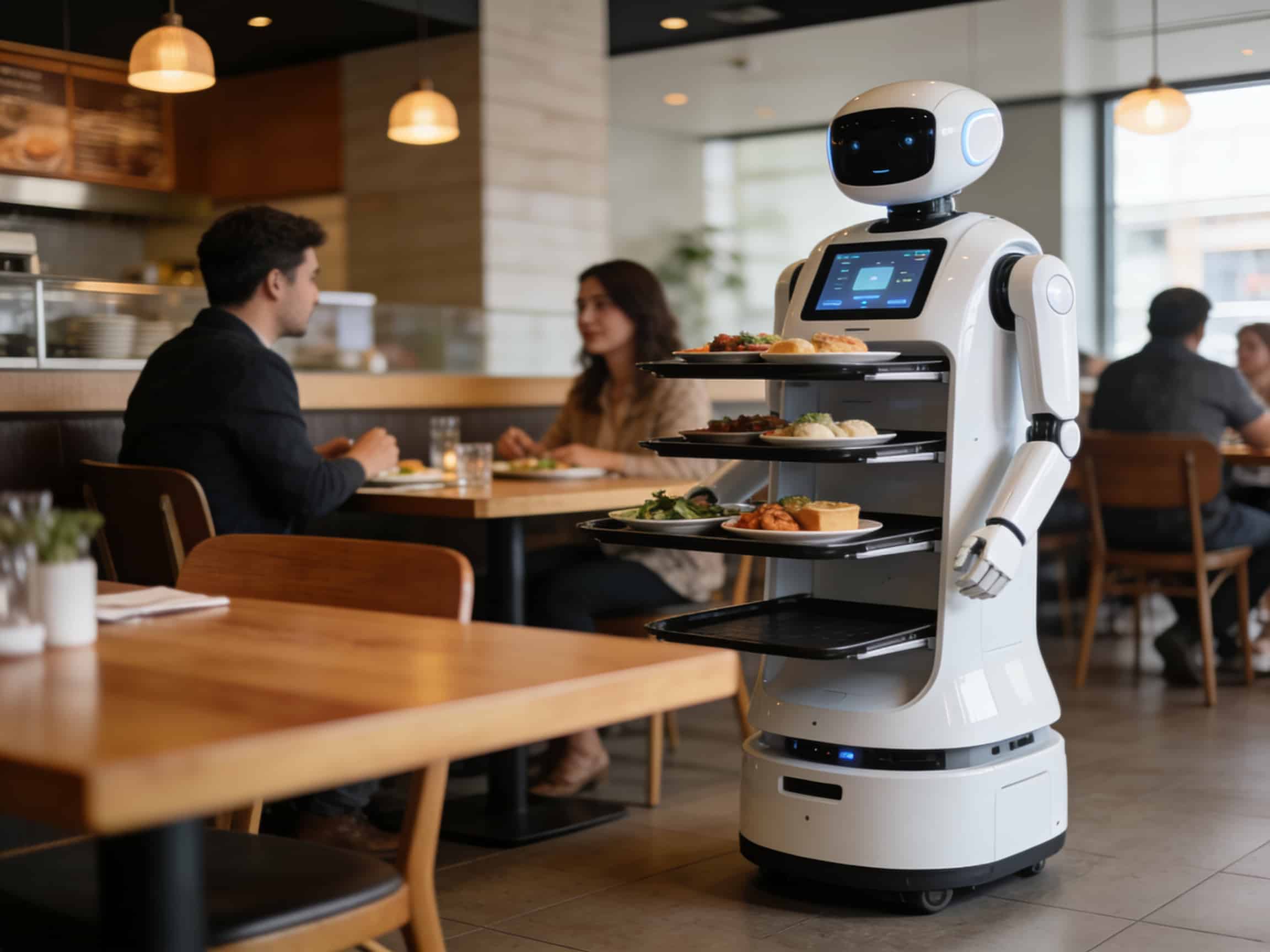 A robotok a szállodaiparban és a vendéglátásban egyre szélesebb körben jelennek meg. Recepciós robotok fogadják a vendégeket, check-in és check-out feladatokat látnak el, míg a felszolgáló robotok a szobákhoz szállítják az ételt vagy italokat. Szobaszerviz robotok gondoskodnak az ágynemű cseréjéről vagy a szobai tisztítás előkészítéséről.
