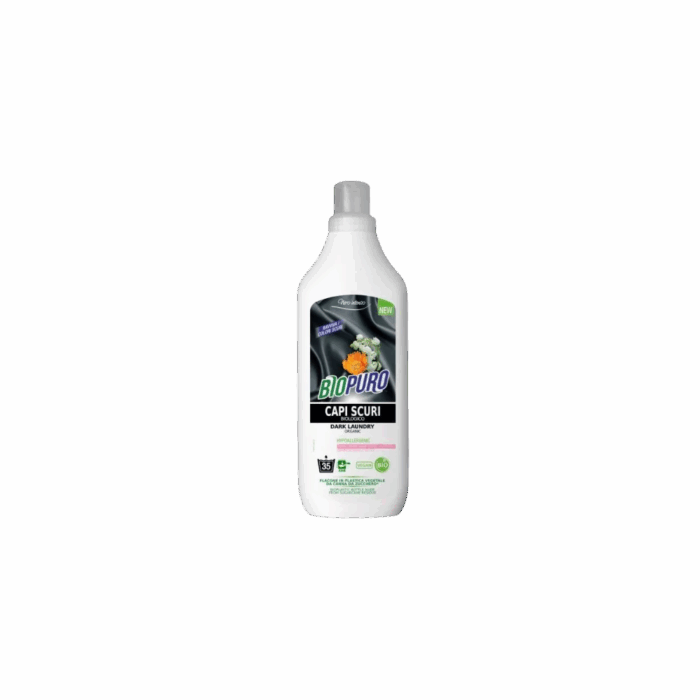 A Biopuro folyékony mosószer sötét, fekete ruhához 1000ml egy természetes alapanyagokból készült, kifejezetten sötét és fekete ruhákhoz fejlesztett mosószer. Innovatív formulája segít megőrizni a ruhák élénk, mély színét, miközben gyengéden, mégis hatékonyan távolítja el a szennyeződéseket.
