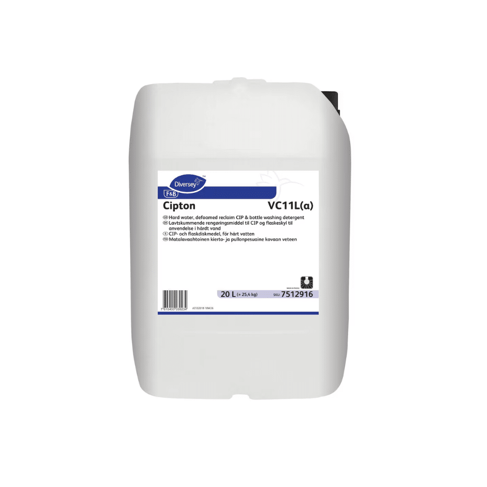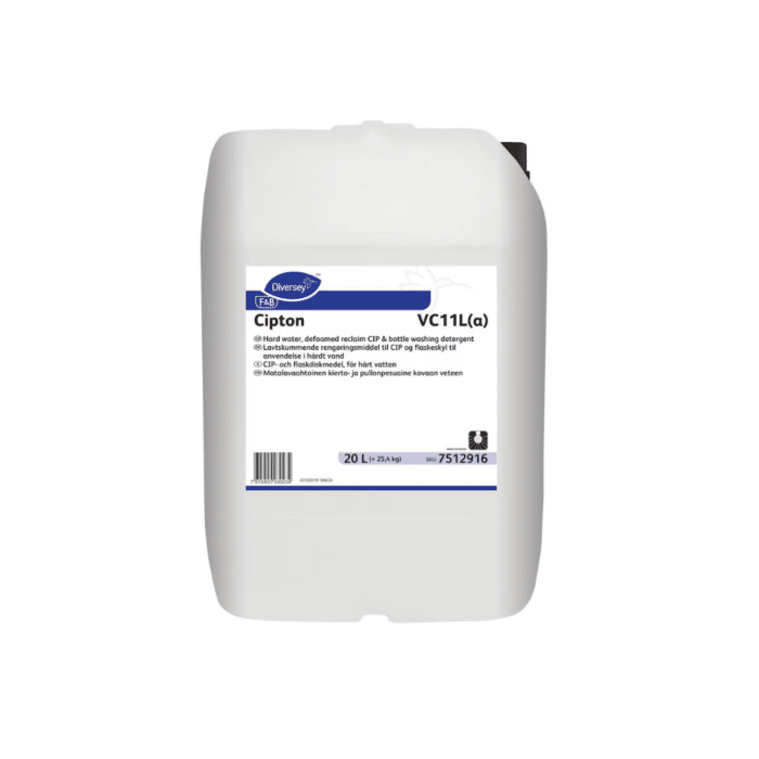 DI Cipton VC11L(a) 20L 7512916 egy általános célú, kemény víznek ellenálló, habzásgátló folyékony lúgos alapú tisztítószer. A Cipton széles körben alkalmazható az élelmiszer- és italiparban, beleértve a CIP (helyszíni tisztítás), palackmosás és permetezéses mosás folyamatokat.
