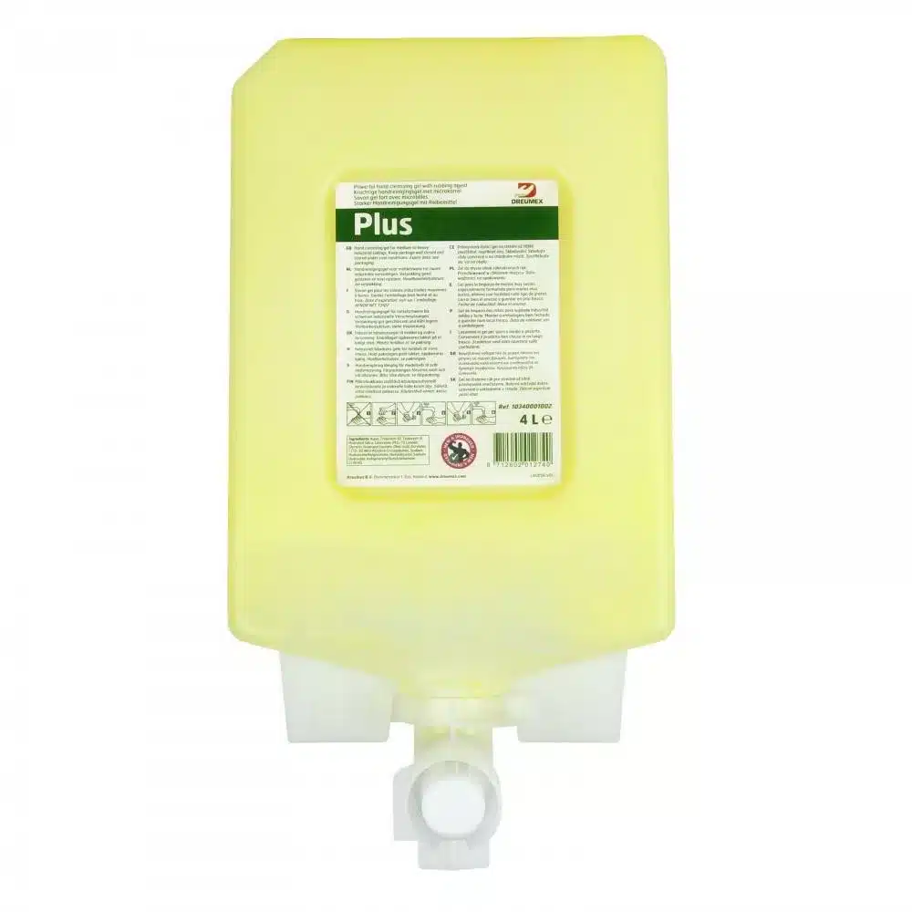 A termék 4 literes kiszerelésben érhető el, ami gazdaságos felhasználást biztosít. Az erős és tartós flakonba épített pumpaszerkezet megkönnyíti a használatot és biztosítja a hosszú élettartamot. A Dreumex Plus kéztisztító kifejezetten a Dreumex EX4000 adagolóval való használatra készült, így biztosítva a maximális hatékonyságot és kényelmet.