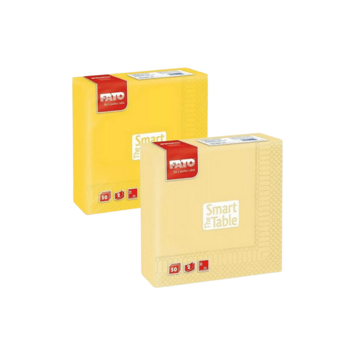 A szalvéta 33×33 cm-es méretének és 1/4 hajtogatott kialakításának köszönhetően kényelmesen használható, miközben esztétikus megjelenést kölcsönöz az asztalnak. A termék két divatos színben érhető el: citromsárga és pezsgő, amelyek tökéletesen illeszkednek bármilyen dekorációhoz vagy hangulathoz.