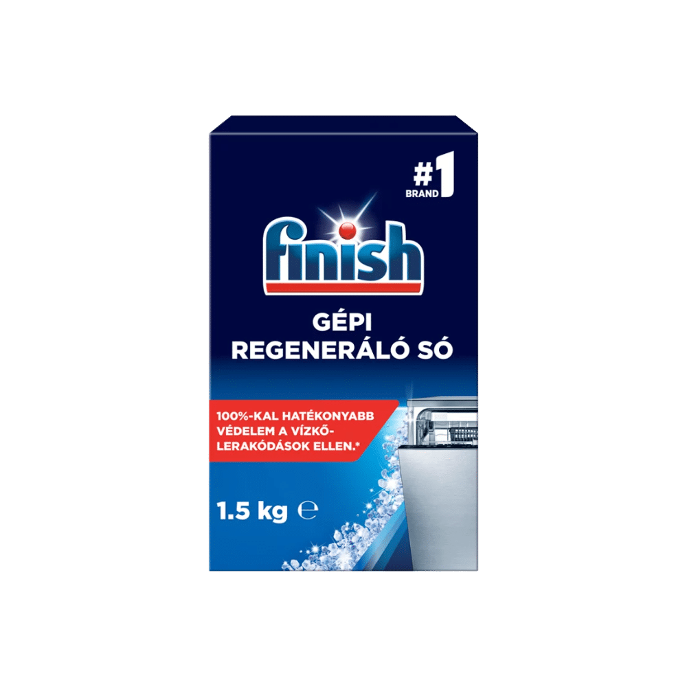 A Finish gépi regeneráló vízlágyító só 1,5kg gondoskodik róla, hogy mosogatógépe hatékonyan működjön és edényei mindig csillogóan tiszták legyenek.