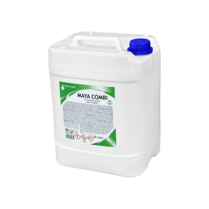 A Maya Combi fertőtlenítő gépi mosogató 10L egy klórtartalmú, folyékony tisztítószer, amely ipari felhasználásra lett kifejlesztve.