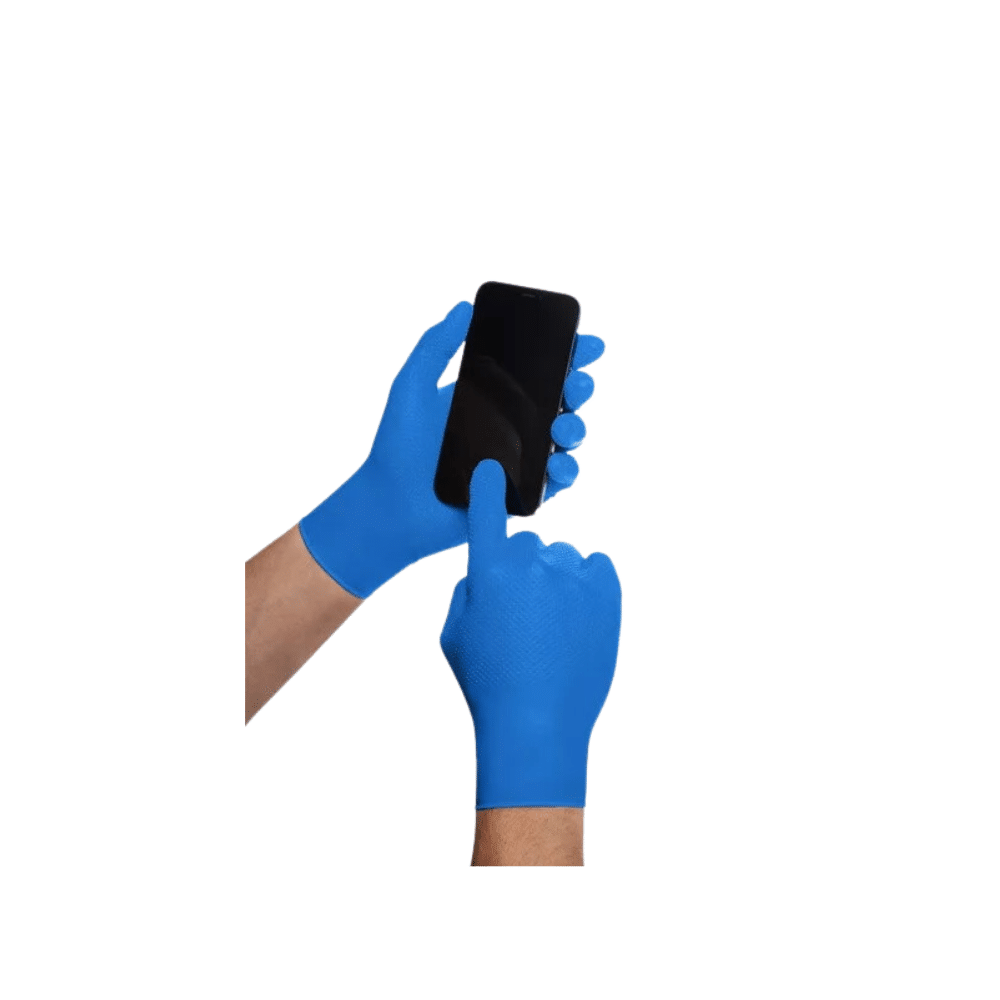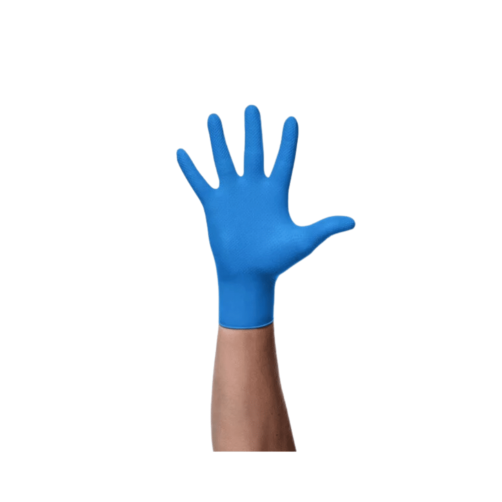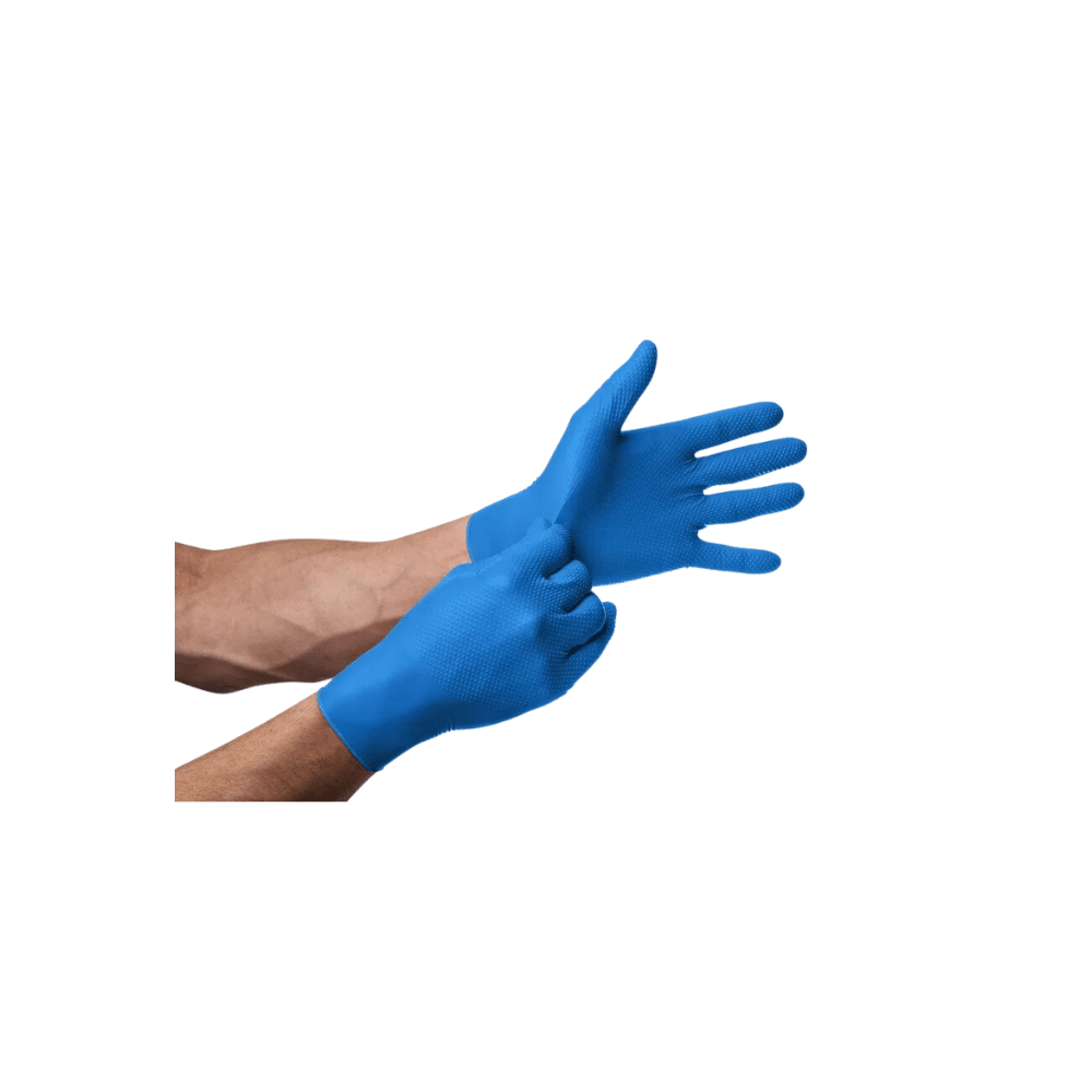 Prémium minőségű, púdermentes nitril védőkesztyű egyedi 3D-s gyémánt textúrával, amely kiváló tapadást biztosít még nedves vagy olajos környezetben is. Kifejezetten élelmiszeripari, egészségügyi és tisztítási feladatokra tervezve.