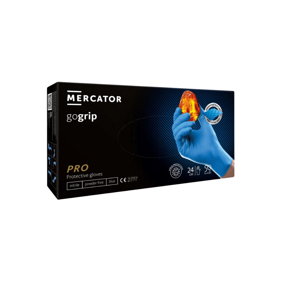 A MERCATOR gogrip Blue Nitril kesztyű 50db/doboz prémium, kiváló minőségű nitril gumiból készült, amely a legmagasabb követelményeknek is megfelel.
