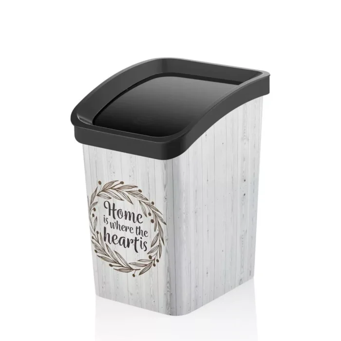 A Műanyag Smart Click billenőfedeles szemetes, Fa mintás 12L egyedi fa mintás dizájnja természetes és otthonos hangulatot kölcsönöz minden térnek, legyen szó nappaliról, konyháról, irodáról vagy fürdőszobáról.