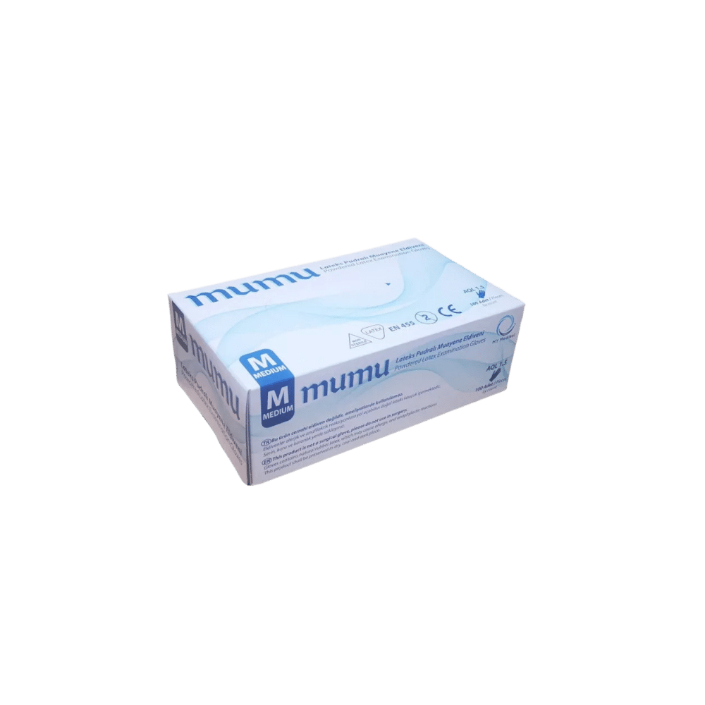 MUMU egyszerhasználatos latex fehér gumikesztyű M-es 100 db/doboz – megbízható védelem minden feladathoz