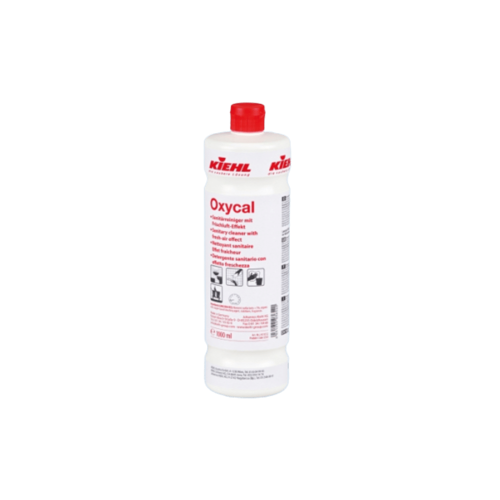 Az Oxycal szaniter tisztító friss illattal 1L egy nagy hatékonyságú, savas bázisú tisztítószer, amelyet kifejezetten a szaniter helyiségek napi takarításához fejlesztettek ki. Kiválóan alkalmas vízkő, mész, húgykő és szappanmaradványok eltávolítására, így használatával fürdőszobája, mosdója vagy nyilvános illemhelye mindig higiénikus és kellemesen illatos marad.