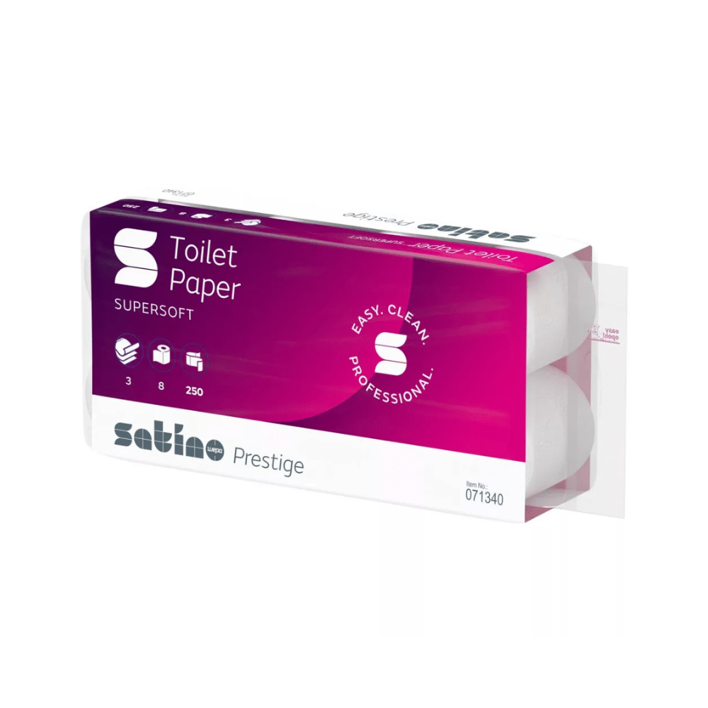 A Satino Wepa Prestige toalettpapír 3 rétegű, fehér, 250 lap, 8 tek/csg 8 csomag/zsák ideális választás minden olyan helyiségbe, ahol a kényelmes használat és a magas minőség fontos.