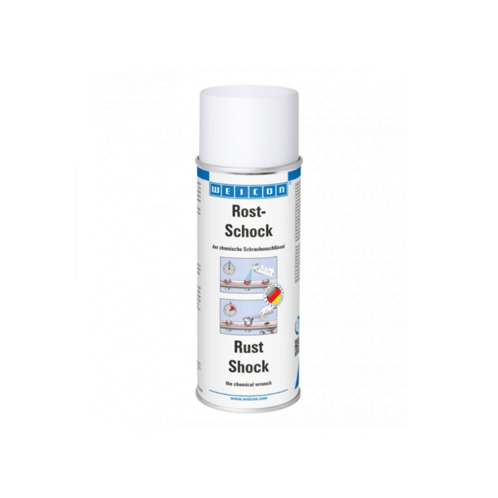 A speciális összetétel által a Weicon Csavarlazító (Rost-Schock) spray 400ml kialakít egy fagyasztó hatást a korrodált felületen. A hidegzsugorodás következtében létrejövő mikroszkopikus réseken keresztül a Rust Shock mélyen behatol a rozsdás területbe. Másodpercek alatt fellazítja a rozsda kristályokat és elválasztja a korrodált felületeket. A Rust Shock még a reménytelennek tűnő esetekben is segít, ahol a csavarkapcsolat korábbanmár csak mechanikusan volt oldható (sarokcsiszoló, autogénvágó).
